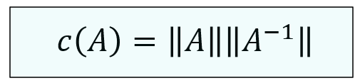 \[ c(A)= \lVert A \rVert \lVert A^{-1} \rVert \]