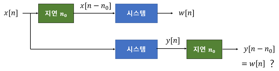 시불변 시스템인지 아닌지는 다음 그림의 방법으로 판별할 수 있다.