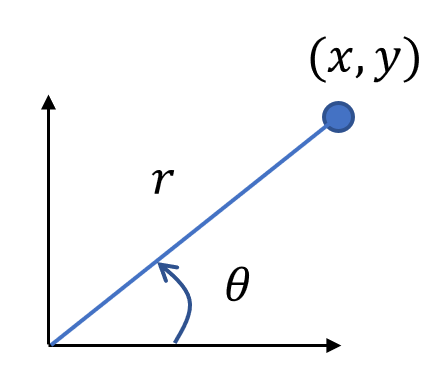 \[ \begin{align} & x=r \cos \theta \\ \\ &y= r \sin \theta \end{align} \]