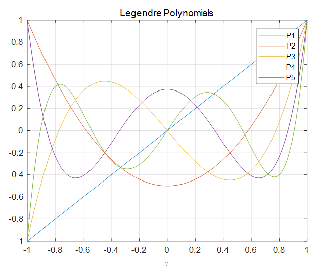 여기서 독립변수 \(\tau\) 는 \([-1, 1]\) 의 범위를 갖는다. \(P_N (\tau)\) 을 \(N\) 차 르장드르 다항식이라고 한다.