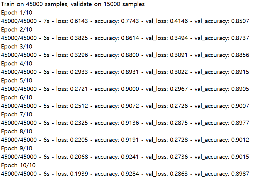 history = model.fit(x_train, y_train, epochs=10, validation_split=0.25)