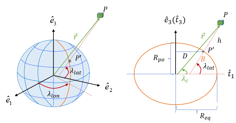 \[ \vec{r}= (D+h \cos \lambda_{lat}) \ \hat{t}_1 + (B+h) \sin \lambda_{lat} \ \hat{t}_3 \tag{14} \]