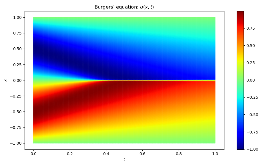 다음은 버거스 방정식에 대한 업데이트된 PINN의 전체 코드다.