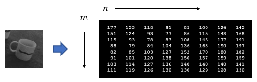 사진 또는 이미지 데이터는 행렬로 처리된다. 이미지 행렬의 성분은 각 픽셀의 세기(intensity)를 나타낸다. 숫자가 커질수록 픽셀의 밝기가 커진다.