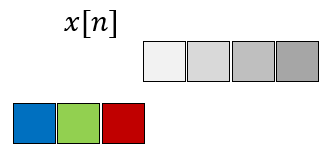 다음과 같이 임펄스 반응과 입력 신호가 있다고 하자.