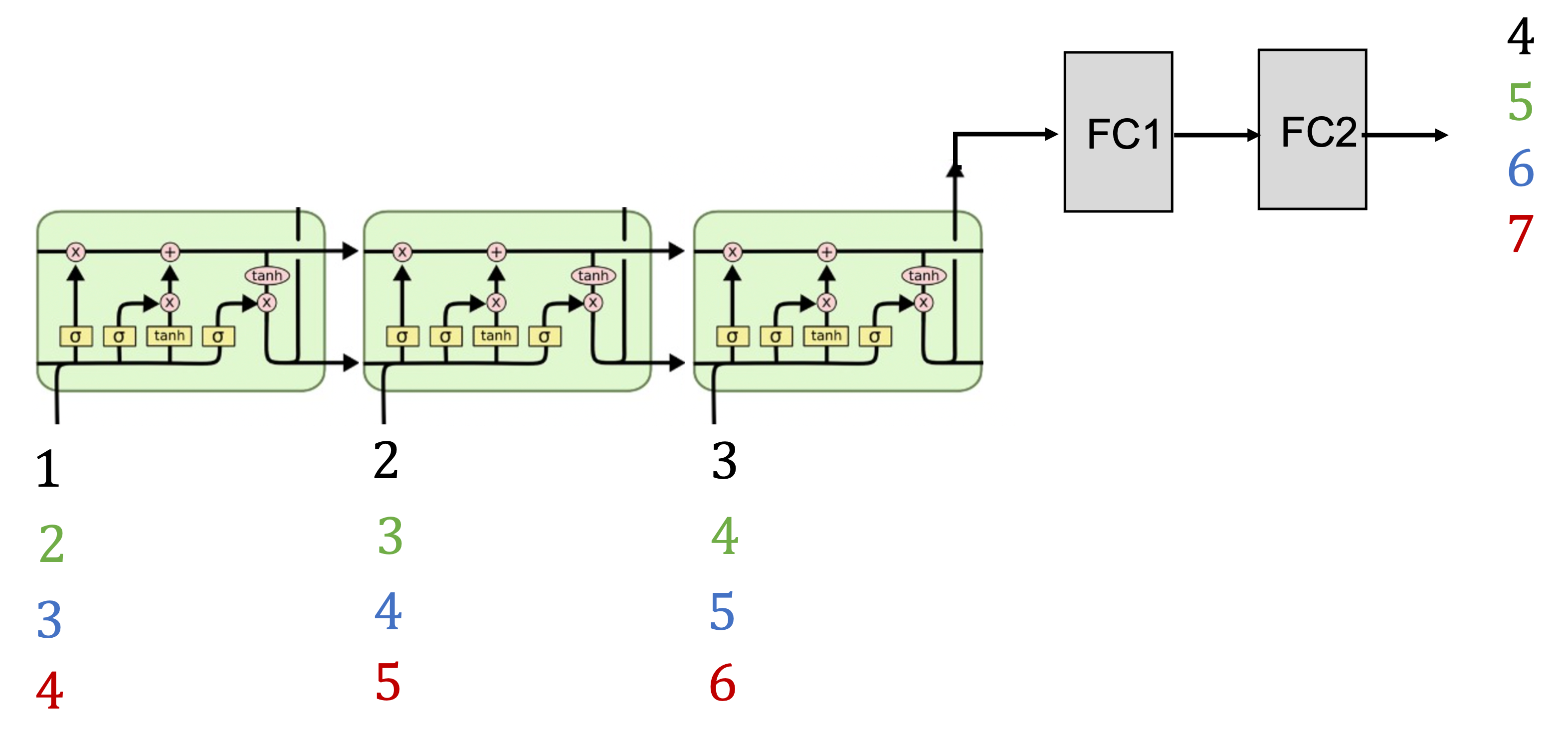 # input-output data : 123->4, 234->5, 345->6, 456->7