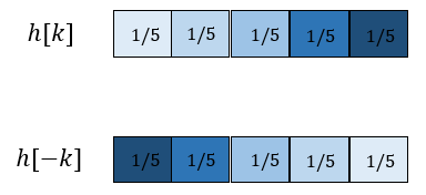 '뒤집기 와 이동' 방법을 사용하여 컨볼루션을 계산하기 위해서 먼저 임펄스 반응을 뒤집으면,