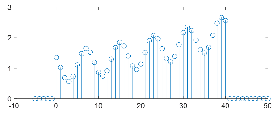 예로서 아래 그림과 같은 입력 신호 \( x[n] \)에 대해서