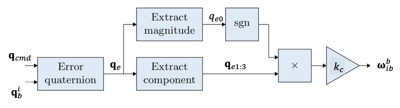 \[ \omega_{ib}^b= k_{cmd} \ sgn(q_{e0} ) \mathbf{q}_{e1:3} \tag{6} \]