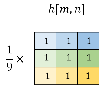 먼저 이미지를 흐릿하게 만드는 스무딩(smoothing) 필터다. 스무딩 필터의 임펄스 반응은 다음과 같이 정할 수 있다.