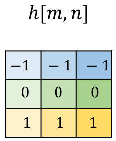 마지막으로 이미지의 가로선을 검출할 수 있는 필터다. 세로 방향의 픽셀 차이를 계산하므로 이미지에서 가로선을 검출할 수 있다.