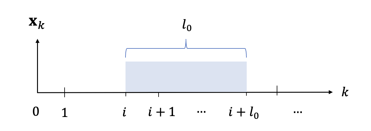 이제 시간스텝 \(k=i\) 부터 \(k=i+l_0\) 까지 식 (2)의 상태 업데이트 식을 전개해 보자.