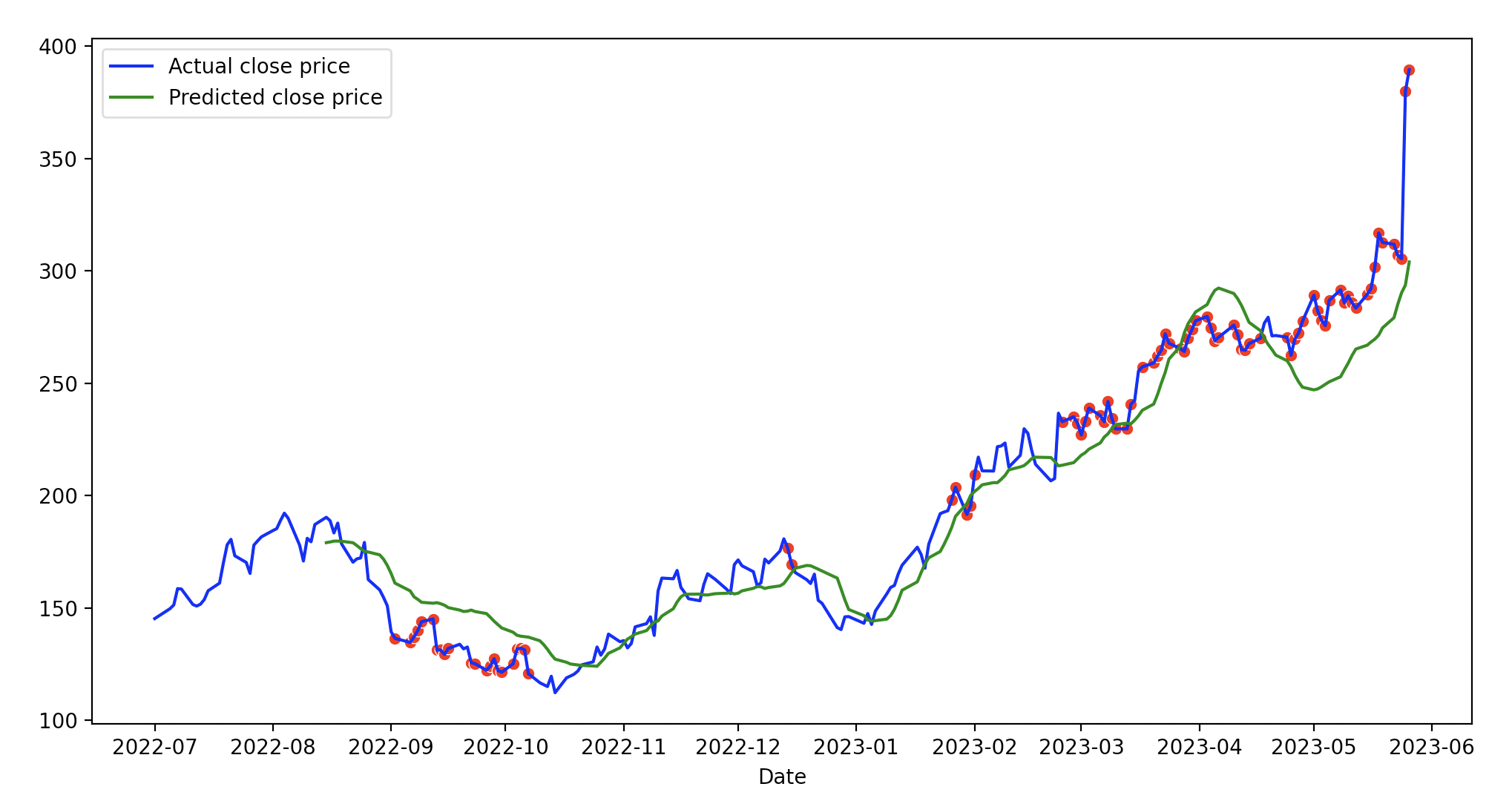 label='Predicted close price')