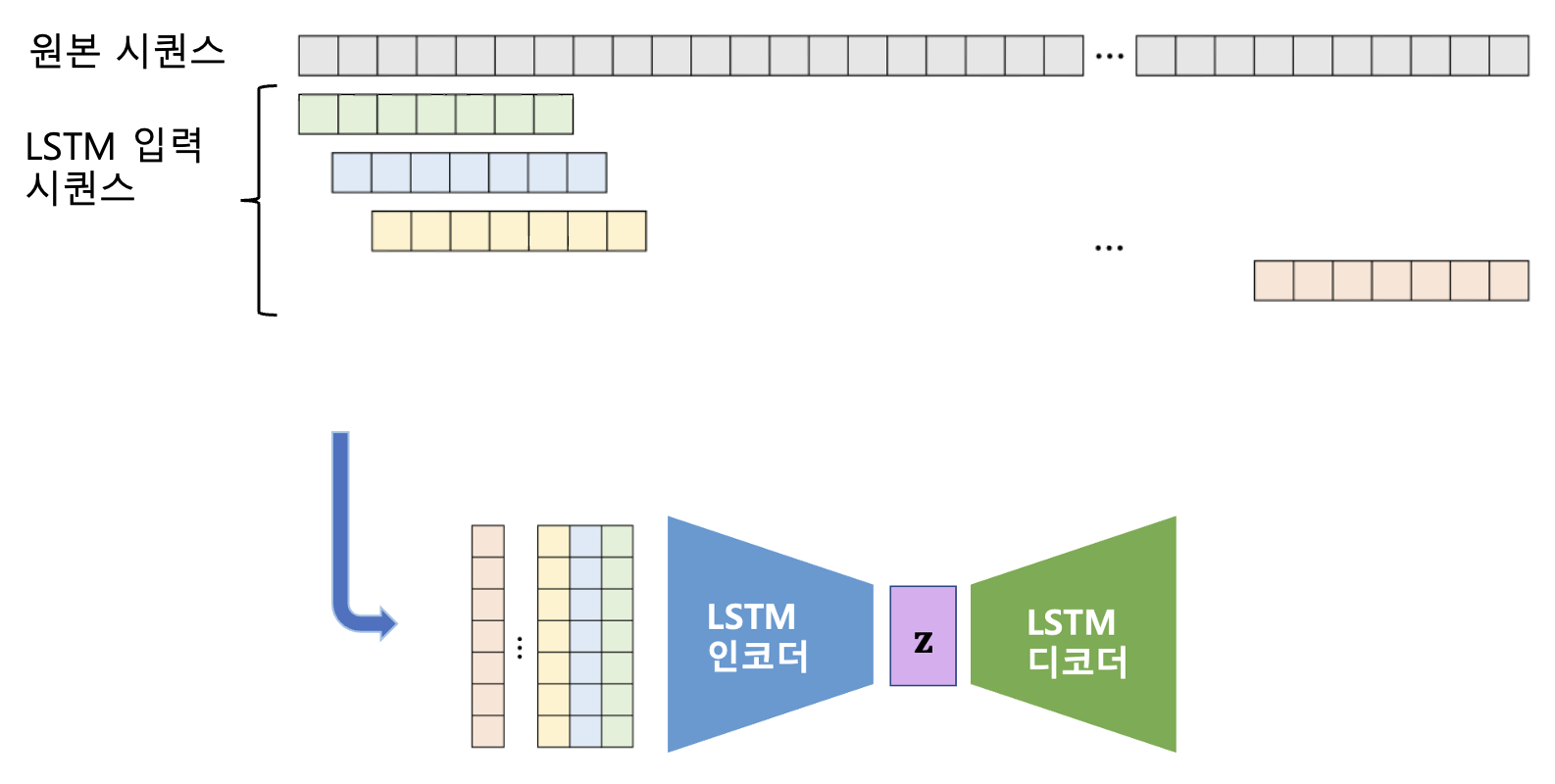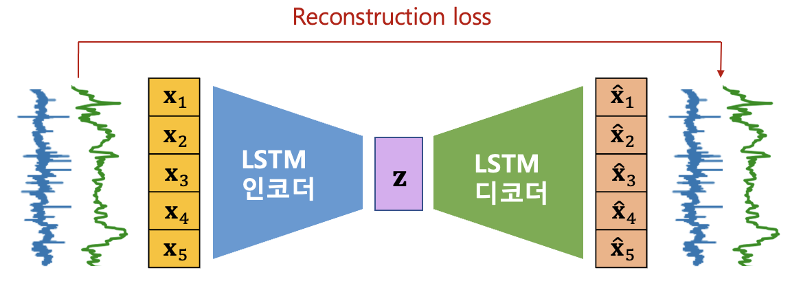 이러한 방법을 시퀀스 또는 시계열(timeseries) 데이터에 적용한 것이 LSTM-AE 이상 탐지 모델이다. LSTM-AE는 인코더와 디코더에 LSTM(Long Short-Term Memory) 신경망을 적용한 오토인코더(AE)다.