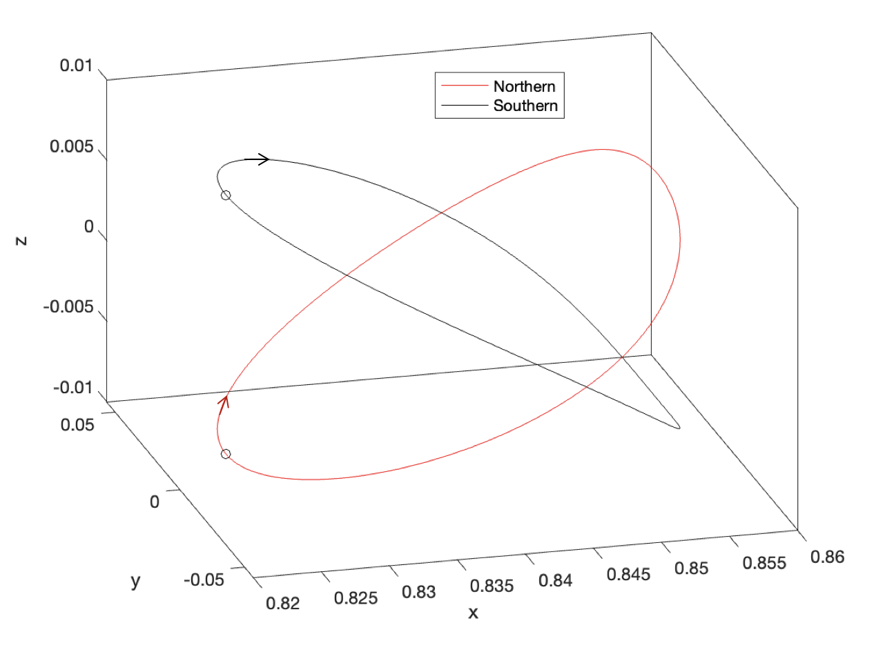 따라서 전통적으로 헤일로 궤도를 계산할 때는 \(A_z\) 만 지정한다. 이에 대한 자세한 사항은 Richardson의
