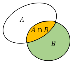 다음 그림에서 보듯이 조건부 확률은 사건 \( A \)이기도 하면서 동시에 사건 \( B \)이기도 한 사건(곱사건이라고 한다)이 발생할 확률과 사건 B만 발생할 확률의 비로 주어진다.