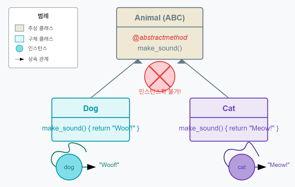 # Animal 클래스는 추상 클래스이므로 직접 인스턴스화 불가