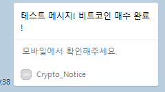 kakao_notifier.send_message("테스트 메시지! 비트코인 매수 완료!")