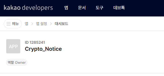 절차는 다음과 같다. 우선 카카오에서 제공하는 공식 개발자 포털인 카카오 디벨로퍼스 에 접속해서 앱을 생성한다.