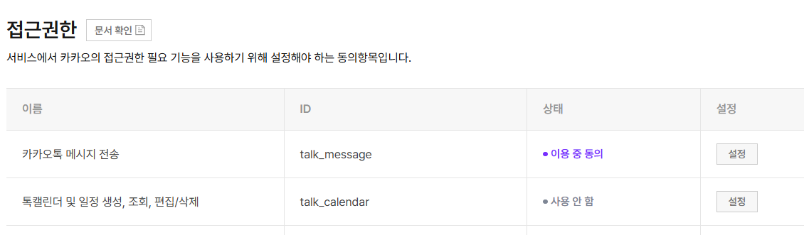 URL에 접속하면 카카오 로그인 화면이 나타난다. 카카오계정으로 로그인하면 권한 동의 화면이 나타나는데, 여기서 "카카오톡 메시지 전송" 권한에 동의하고 "동의하고 계속하기" 버튼을 클릭한다. 권한 동의가 완료되면 브라우저가 자동으로 다음과 같은 주소로 이동한다.