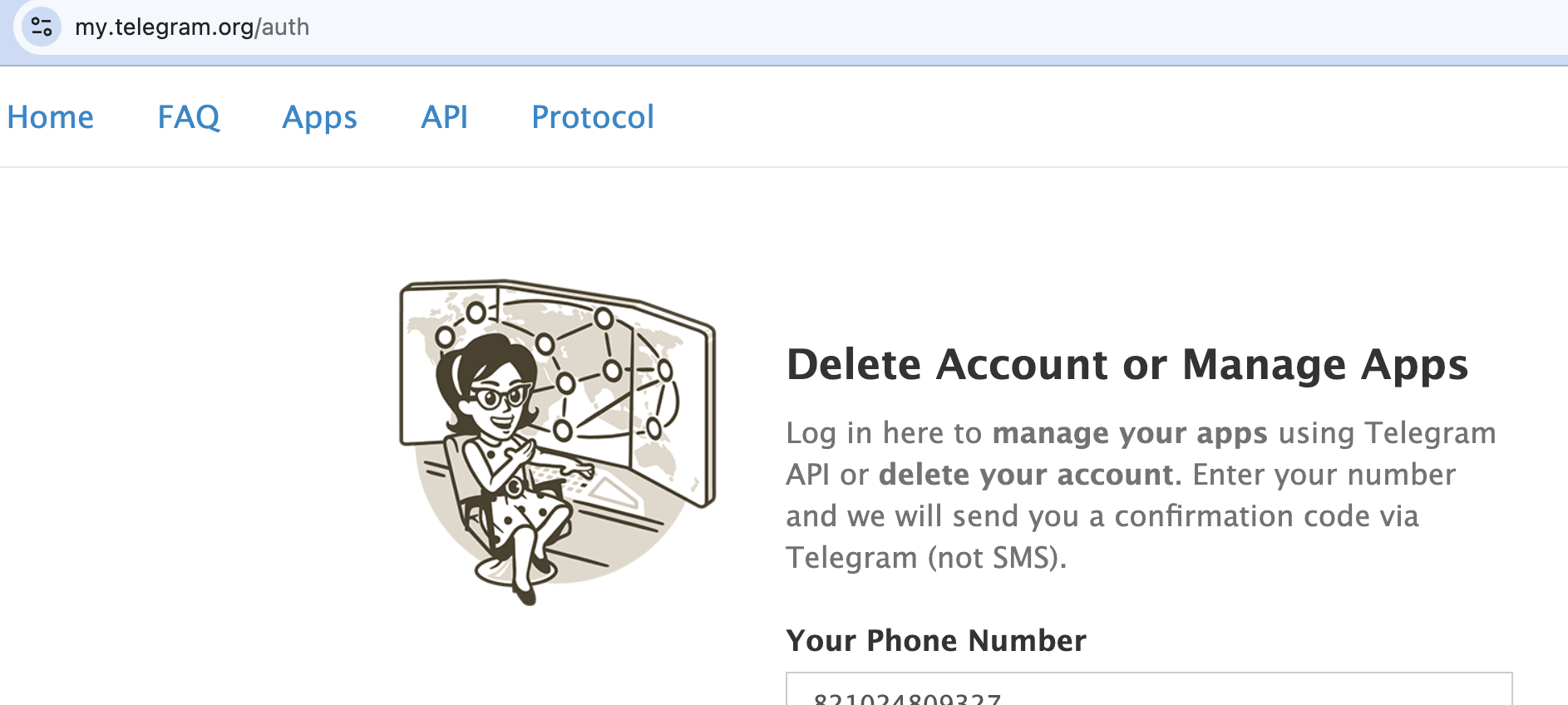 우선 텔레그램 개발자 포털(https://my.telegram.org)에 접속한다.