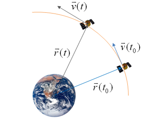 초기값을 주고 미분 방정식을 풀어 보라고 하는 문제를 초기값 문제(IVP, initial value problem)라고 한다. 이 경우 초기값은 시간 \(t=t_0\)에서 주어진 질점 \(m\)의 위치 및 속도 벡터의 값이다. 초기값을 이용하여 기본 궤도 방정식을 수치 적분하면 질점 \(m\)의 궤적(위치 및 속도)을 시간의 함수로 나타낼 수 있다.