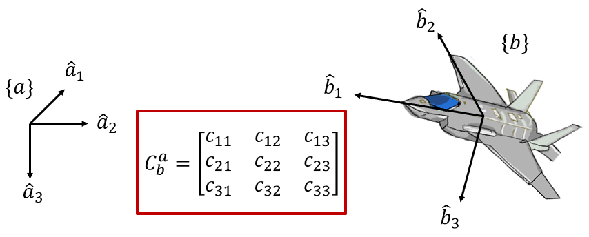 DCM의 또 다른 단점은 직관적이지 않다는 것이다. DCM의 9개 숫자를 보고 두 좌표계의 상대적인 자세를 상상하기란 매우 어렵다. 하지만 DCM은 좌표변환이 쉽고 연쇄법칙이 적용된다는 장점이 있다.